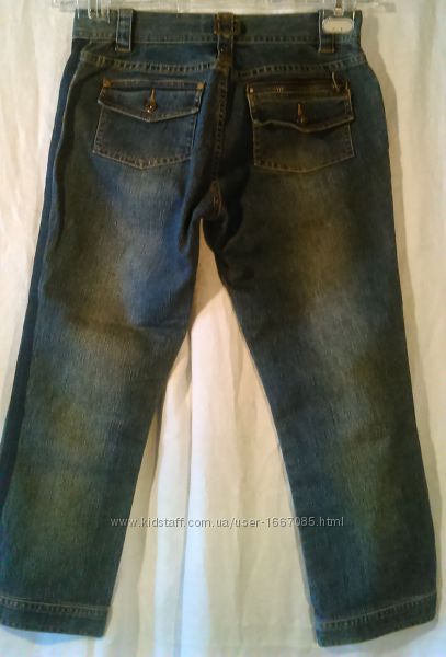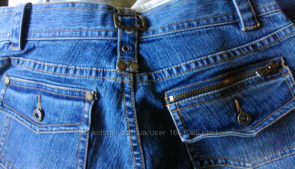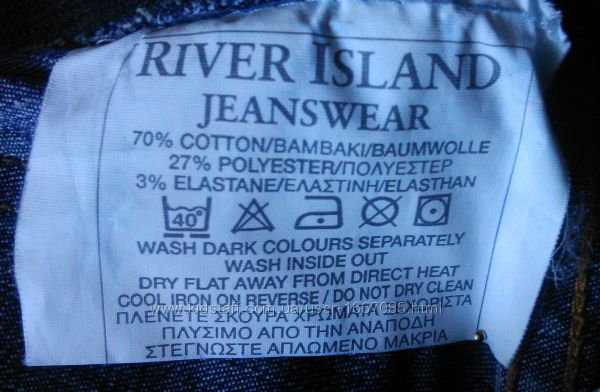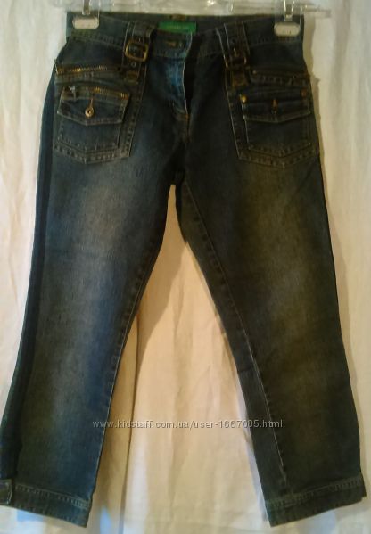 Бриджи капри джинсовые River Island, р.44, темно-синие, 70% коттон 27% полиэстер 3% эластанЗастежка-молния металлическая (работает), пояс под ремень, двойные карманы и передние, и задние. Заклепки River Island и пуговицы River Island на карманах и на манжетах под коленями.