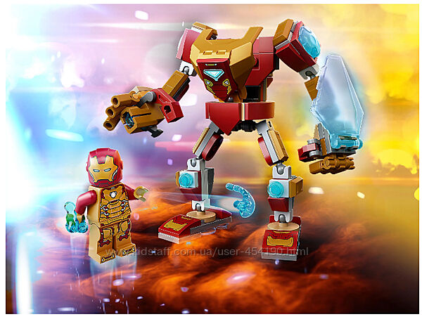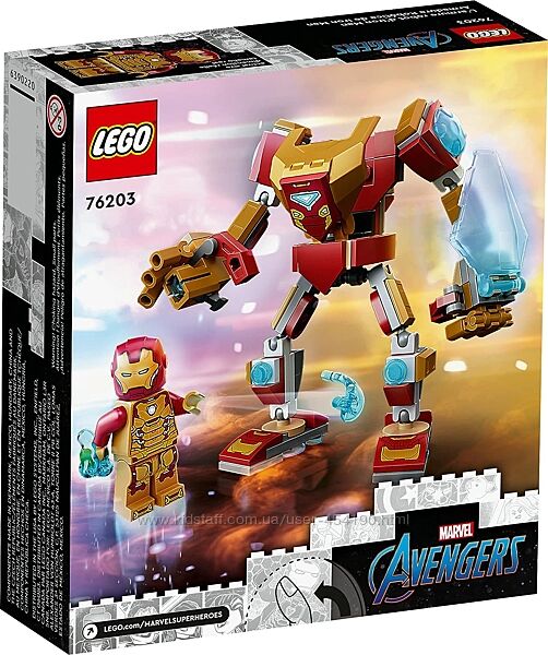 Конструктор LEGO Marvel Super Heroes 76203 Робоброня Железного человекаПопулярный персонаж Marvel — включает в себя минифигурку Железного человека и сборного робота с заряженным шипометом, большим энергетическим щитом и полностью сочлененными руками и ногами. Высота в собраном состоянии более 11 см. Этот подвижный робот достаточно велик для эпических игр, и его легко носить с собой.