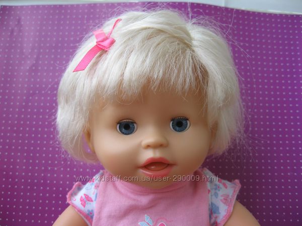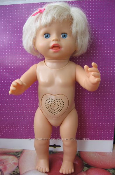 Продам куклу Baby Ah-Choo фирмы "Mattel". Забавная кукла 35 см ростом, издает звук чихания и кашля при надавливании на живот, болтает по-английски, просит вытереть нос, измерить температуру, дать ей лекарство, говорит "А-а-а-а!" при надавливании на язык, если поднести ко рту магнит, чмокает и говорит, мол, лекарство противное. Видео https://www.youtube.com/watch?v=gPXd_5TQCiU. Кукла продается без аксессуаров, но можно использовать магнитную соску от беби-бона. В подарок отдам комплект одежды, сшитый-связанный мной для этой куклы. Дефектов не нашла, кроме трещин напряжения в районе рук. Звук можно отключить при помощи переключателя и играть куклой так, но слишком сильно трясти и ронять не желательно. Оплата- 100% предоплата на карту Приватбанка, пересылка Укрпочтой и Новой почтой за счет покупателя , обмена и возврата нет.