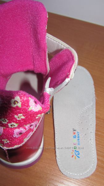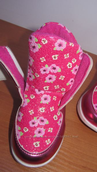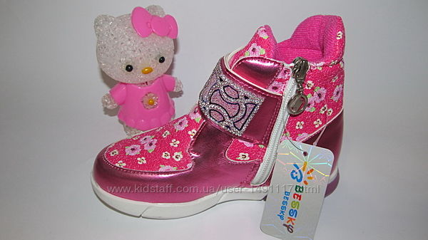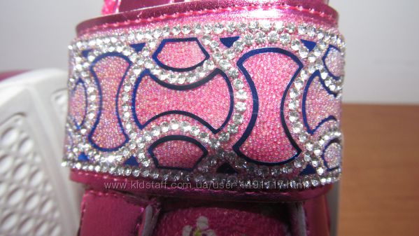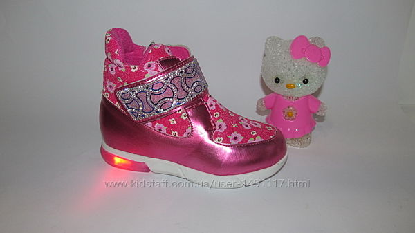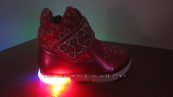 Распродажа!!!Стильные оригинальные ботиночки на девочку малинового цвета. В пятке находится фонарик, при нажатии на пятку он мигает разными цветами. Липучка украшены камешками, которые на солнце будут придавать ботиночкам необычность. Сбоку замочек. Стелька кожаная с супинатором, вынимается.По описанию: