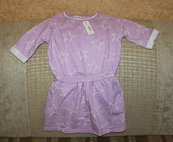 Отличное качество! Цвет фиолетовый с белыми звездами. По боках в юбочке платья карманы.