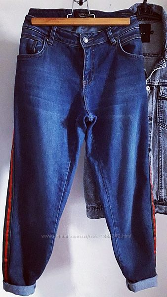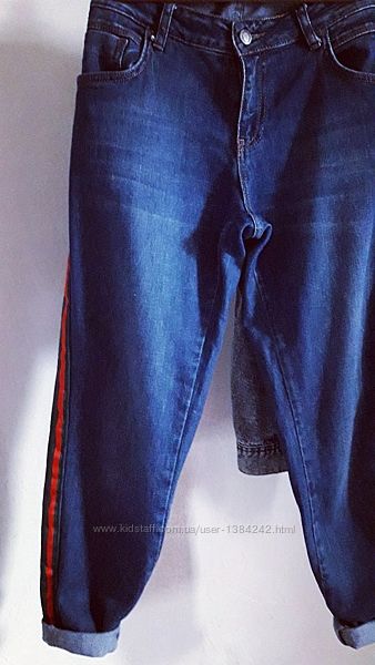 Оригинальные премиум джинсы мом/бойфренды с комби лампасами /GUCCI SHEROCCO/ /Premium Denim Crafted Fashion Wear Wearing and Enjoying/ Размер указан турецкий: W27.. смело по замерам на L/XL.. Made in Turkey. Состав изделия: 99% Cotton. 2% Elastane. ( фактурный джинс деним средней плотности.. ) Ориентир. по замерам ниже.. Замеры изделия: Длина по боковому шву- 98см. Шаговый шов- 75см. Посадка- 35/30см. Ширина штанины- 30/20см. Пот/Поб- 47/55см. Момы в идеале.. покупала за границей в разы дороже..