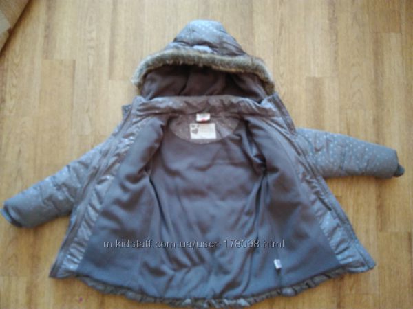 Красивая и очень теплая курточка Тополино, привезена с Германии. Подклад флисовый. Капюшон можно отстегнуть. Сзади сердечко, которое светится в темноте. В отличном состоянии.