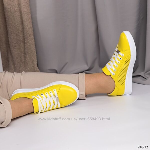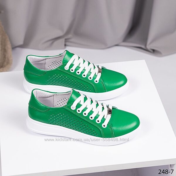Подробное описание: Шкіряні жіночі літні кеди жовтого, зеленого та блакитного кольору