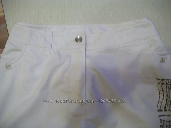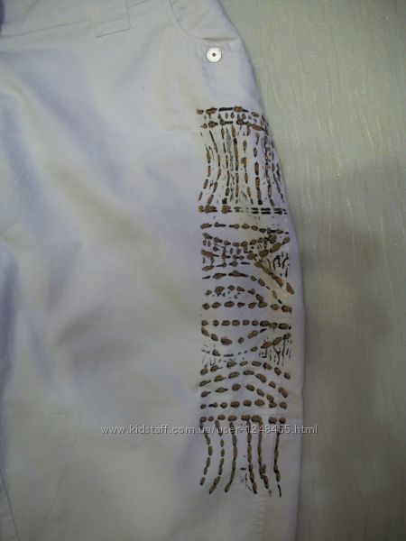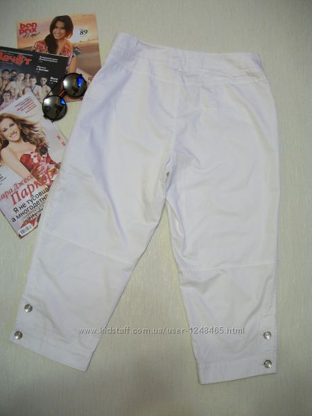 Легкие бриджи от фирмы TUZZI (Германия), в очень хорошем состоянии. Бриджи сбоку украшенные стильным принтом.Внизу манжеты которые застегиваются на две пуговицы.