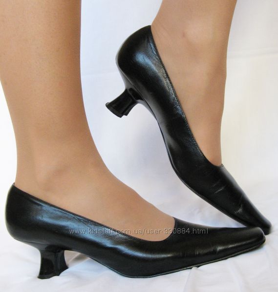 686. Туфли на изящном невысоком каблучке немецкого бренда "More&More", надевались несколько раз, легкое б/у без недостатковМатериал верха - натуральная кожа черного цвета, качественная, мягкая и эластичная, с легким глянцевым отливомПодкладка и стелька - натуральная кожа голубого цвета