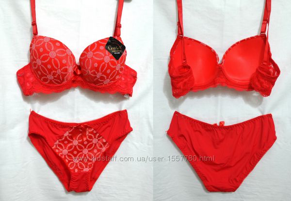 Красные комплекты с белым дизайном в размерах 70В, 75В.