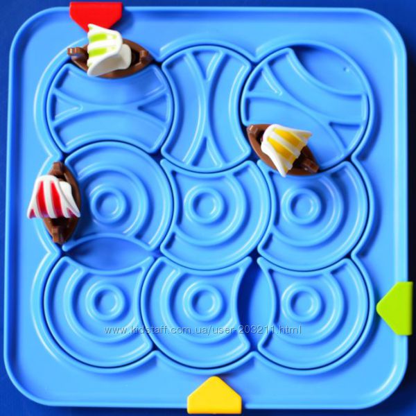 2) Двигай корабли до конечной остановки (до стрелки того же цвета, что и паруса), поворачивая их между волнами: