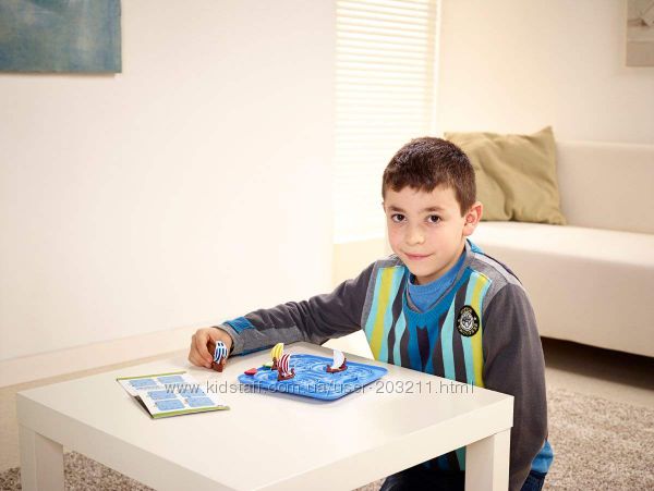 В комплекте: игровое поле, 4 корабля, 4 стрелки, 9 подвижных частей-волн, инструкция с ответами.