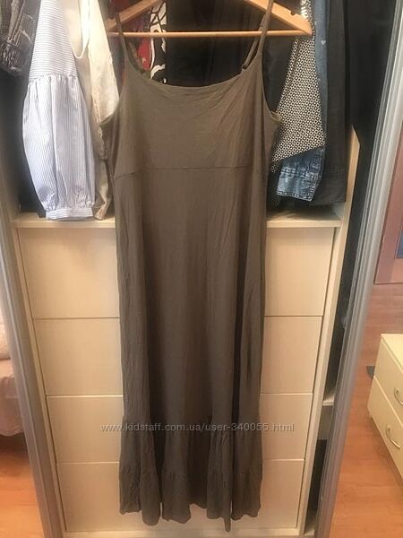 Ідеальне віскозне максі кольору хакі, приємне до тіла. Довжина 120см без бретельок + можна регулювати , на спинці резинка регулює об´єм грудей, стегна вільні.