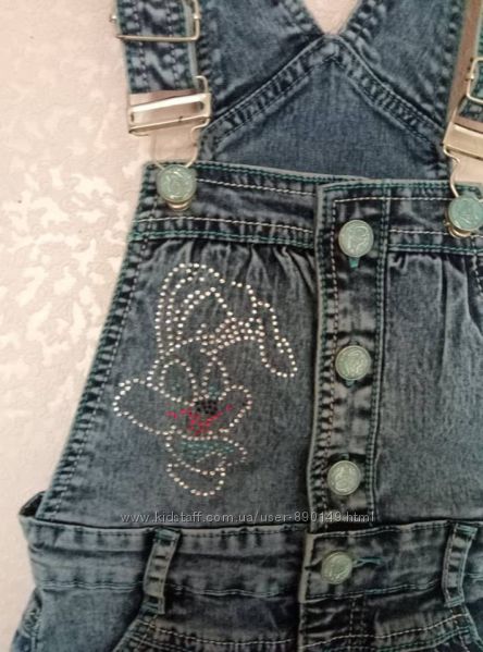 Джинсовый сарафан , указан рост 122 . Регулируется бретелямиПотертостей, пятен, дырок нету.