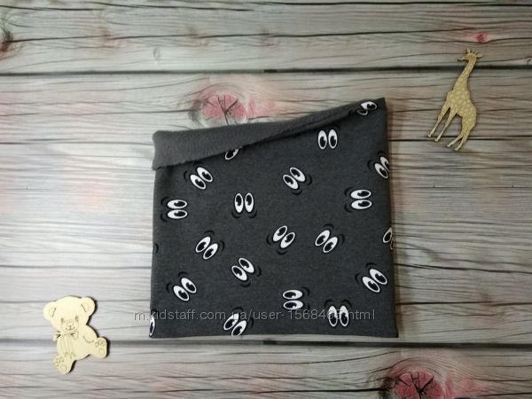 Двусторонний снуд : трикотаж с флисом . Согреет вашего малыша в непогоду.К снуду можно пошить и шапочку. Состав трикотажа : 92% хлопок, 8% эластан
