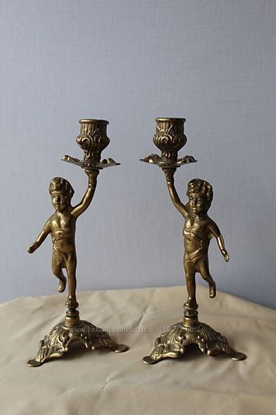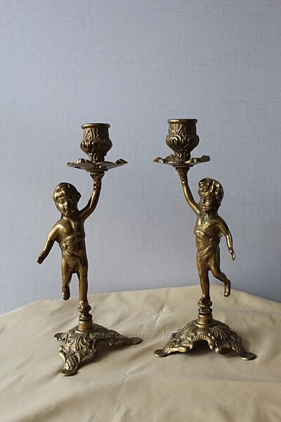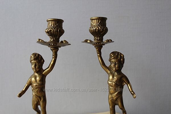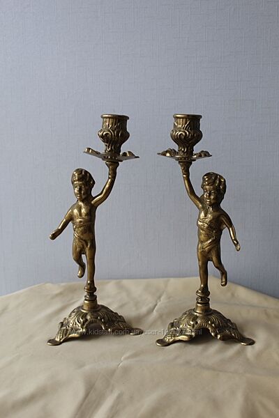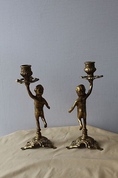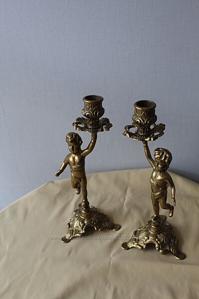 Подсвечники, пара, путти, Дания, бронзаПара старинных подсвечников с мальчиками, на 1 свечу каждый.