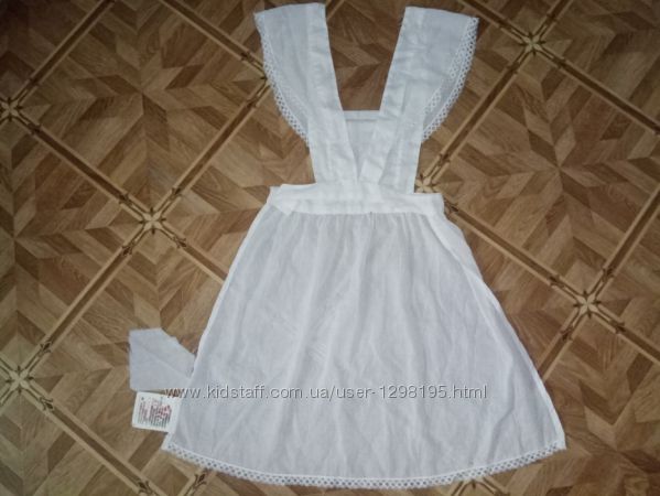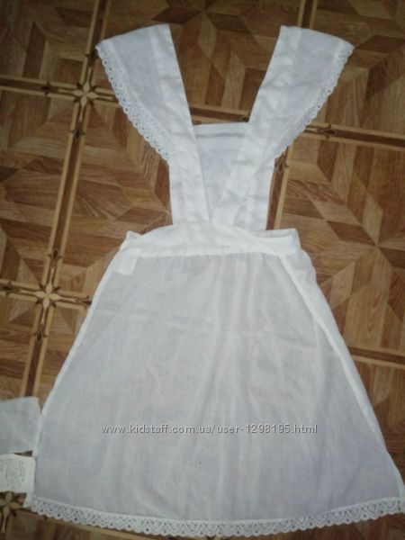 Продам фартуки школьные СССР белые для девочки. Новые, с бирками, окличного качества, очень нарядные. Фартук из х/б ткани предлагается к платью в качестве комплекта для торжественных школьных мероприятий. Отделка - кружево и параллельно застроченные складочки. Стильный школьный фартук, выполненный в лучших традициях школьной формы. Застегиваются на пуговицу сзади, пояс можно увеличивать/уменшать путем переставления пуговицы. Фартук выполнен из х/б ткани, украшен кружевом. На всех фартуках есть запасные кусочки ткани. Смотрите замеры, чтобы сделать правильный выбор.Фартук 1 (фото 1,2): примерно на рост 125-138. На верхней грудной части фартука есть карман. Бретели держаться на плечах, сзади сходяться накрест и креняться к поясу. Длина от верха бретелей до низа - 86см, висота верхней части от плеча до пояса – 39см, длина от пояса до низа – 45см, объем талии - 62см с возможностью увеличения/уменьшения на 6 см. Ширина пояса – 3,5см.