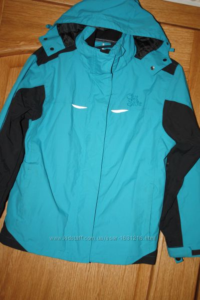 Красивая теплая курточка фирменная р-146/152 в прекрасном состоянии.Красивый бирюзовый цвет,внутри флисовая подкладка,снимается,не продуваемая водонепроницаемая дышащая ткань.длина-65,плечи-46,,плечо-13 рукав от плеча-55см,ширина от подмышек-32