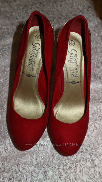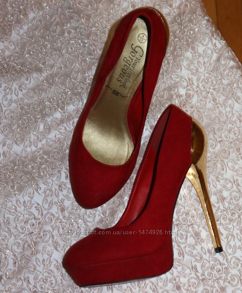 Туфли Gorgeous your feet look. Размер 4/37. Высота каблука11см., платформа 2,5см.,по стельке 24см. Состояние на фото, идеальное, на улицу не одевались.Цвет красный, материал замш. каблук металический