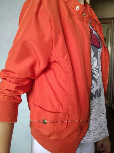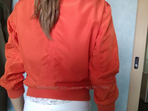 Эффектная брендовая качественная курточка ветровка с укороченным рукавом 3/4. На весну-лето. Без подкладки.Низ и манжеты на широкой трикотажной резинке. Модный апельсиновый цвет 2020.ткань напоминает шелк, очень яркая и приятная.