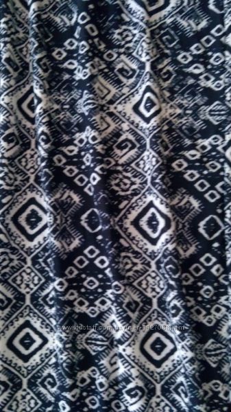 Отдам в подарок при покупке у меня любой вещи стоимостью 300 грн. и выше. Летние брючки из гладкого, приятного на ощупь "бамбукового" материала. Очень удобная, не мнущаяся и вместе с тем "холодящая" в жару ткань. Кто носил, тот в курсе. :) Сама модель брюк тоже комфортная. Пошив аккуратный. Новые, не носила. На рост 170 см. оказались чуть коротковаты. Состав ткани: 85% бамбук, 15% полиамид. Цвет молочный с темно-синим узором. Длина по боковому шву 102 см., по внутреннему шву 70 см. ПОТ 32 см., пояс на резинке, растягивается до 80 + несколько см. ПОБ 52 см. Высота посадки спереди и сзади одинаковая - 34 см. Брюки заужены книзу. Ширина брючины вверху 31 см, внизу 16 см. Брючины заканчиваются манжетами. Спереди два врезных кармашка. Возврат не предусмотрен.