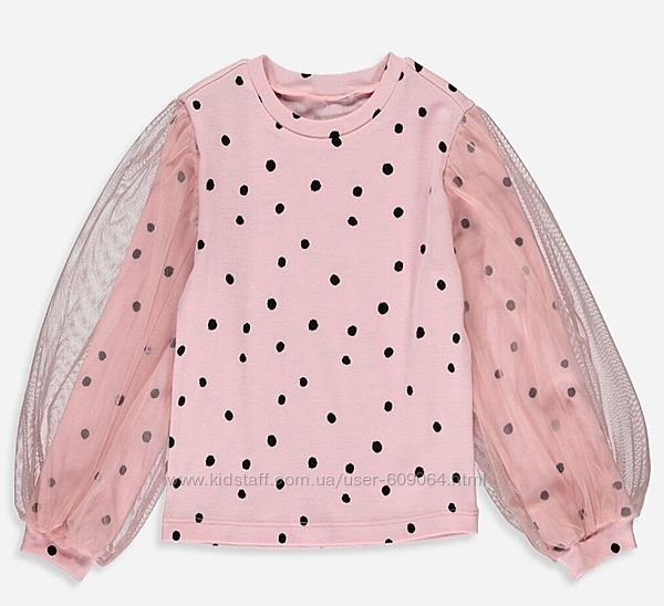 ФОТО 6- Плотный Розовый Реглан в черный горошек, рукава с тюлем