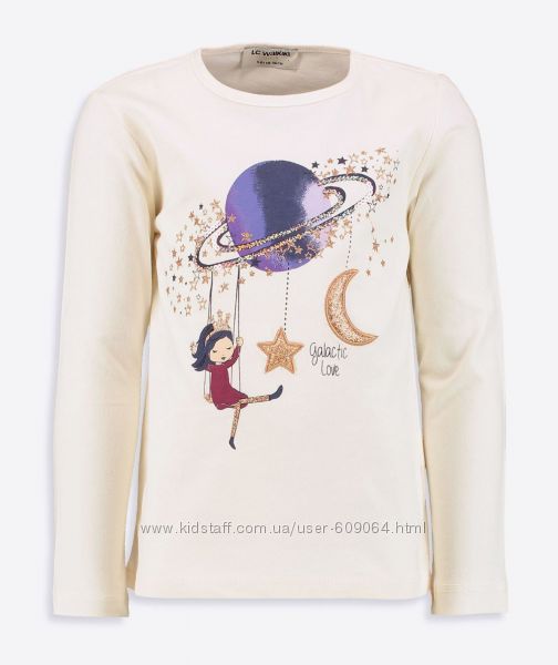 ФОТО 5- Белый Нарядный Реглан- Золотой прин-Аппликация-Девочка-Луна/ Планеты/ Звезды