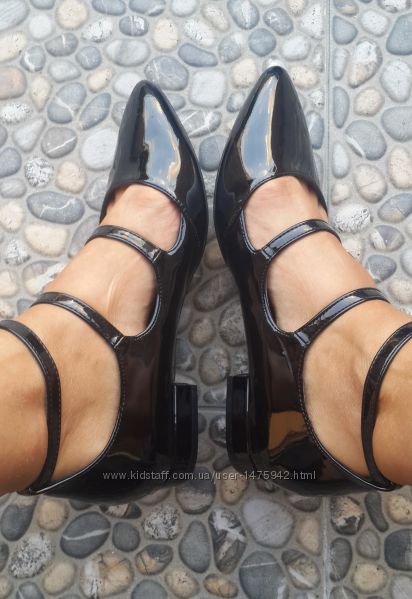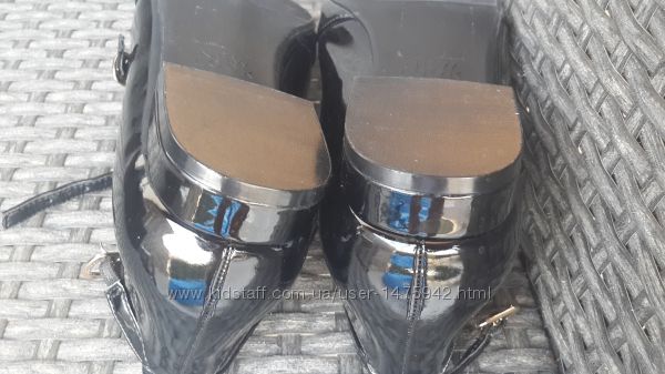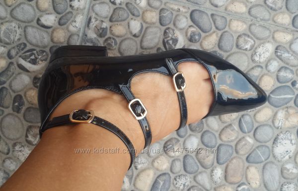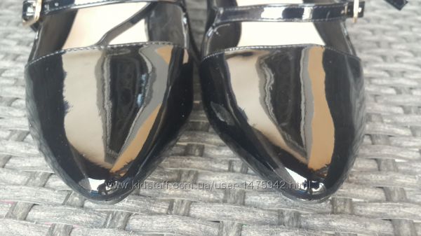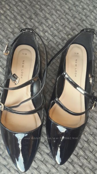 Стильні туфлі від New Look 38 розмір. Устілка 23,5 см. Виготовлені з лакованої екошкіри чорного кольору.Защіпаються на три пряжки.