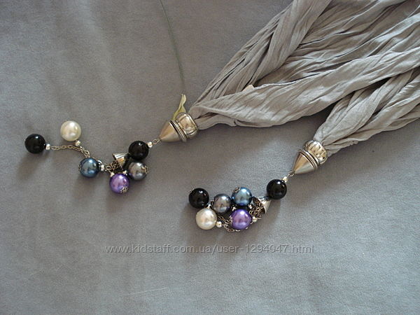 Фото 6,7,8,9. Шарф из нежной легкой ткани, с висюлькам-сердечками. Ткань натуральная -жатка. Длина 170 см.Шарф очень нарядный Цена 260 гр