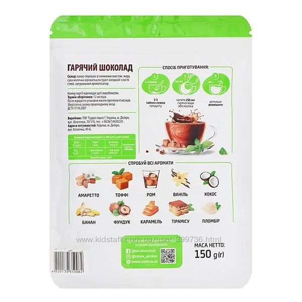 Подробное описание: Горячий шоколад без сахара Stevia, вкусы Ваниль, Фундук, Амаретто