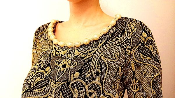 Подробное описание: Платье женское короткое чёрное люрекс золотой бандажное р44