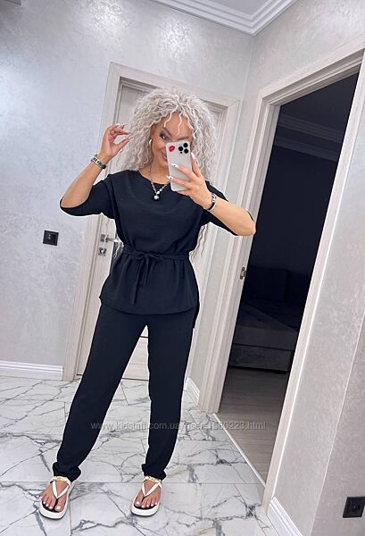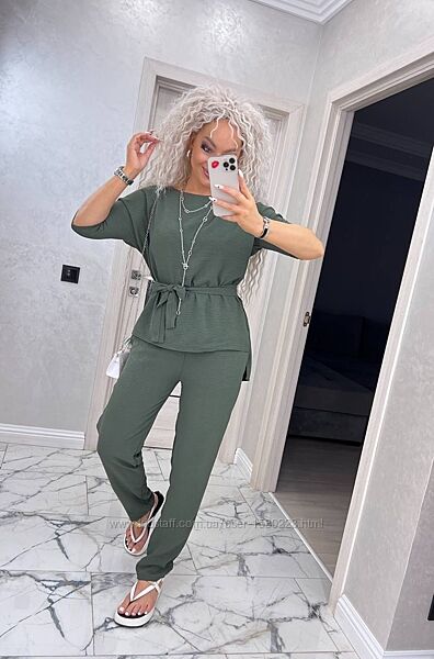 Подробное описание: Легкий літній костюм жатка 40-54рр блузка та штани асортимент кольорів