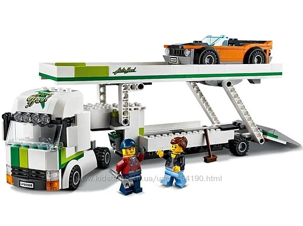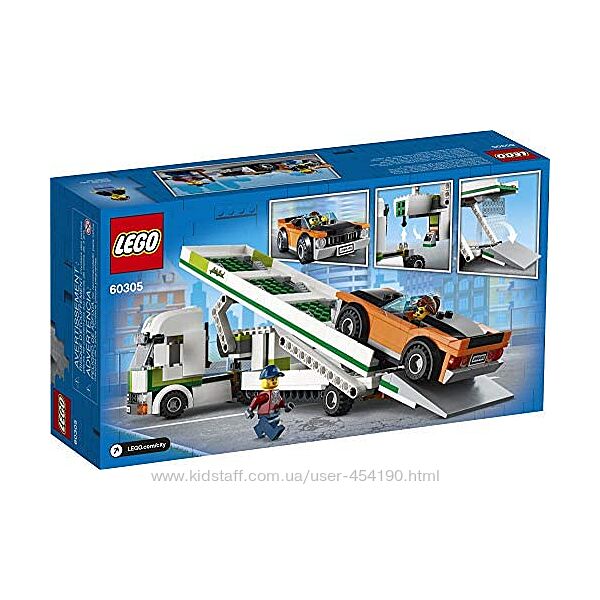Конструктор LEGO City 60305 АвтовозПрисоединяйтесь к водителю автовоза LEGO® City. Этот сочлененный двухэтажный грузовик оснащен множеством интересных функций. Опустите верхнюю платформу, разложите задний пандус и загрузите обтекаемый и мощный масл-кар. Не забудьте использовать блокировку машины для безопасной перевозки. Когда все будет готово, садитесь за руль и выезжайте на шоссе!