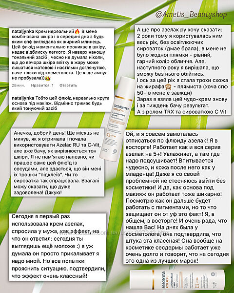 📍 AZELAC RU флюїд, призначений для всіх типів шкіри та має легку текстуру, яка швидко вбирається шкірою і не закупорює пори👌🏻