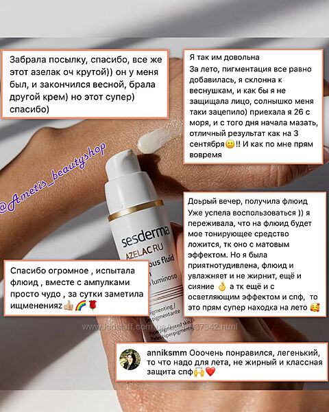 ✨ Сяючий флюїд AZELAC RU SPF50 ✨ від Sesderma 🦋 [ ДЕПІГМЕНТАЦІЯ + SPF50 + СЯЙВО ТА РІВНИЙ ТОН ] Багатофункціональний засіб, який ⤵️ Поєднує в собі максимальний