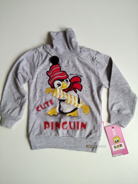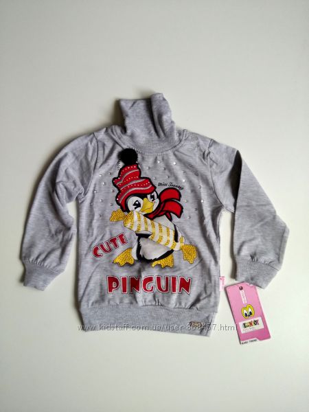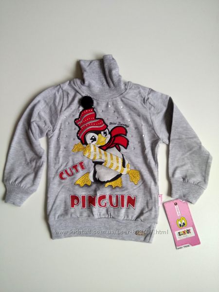 Гольф для девочки Пингвин с конфетой Кофта .С микро начесом.,Кофты имеет оригинальный дизайн Ворот на кнопках.можно использовать ка гольф, а также можно растегнуть и откинуть его и красиво уложить на груди как воротник.Гольф украшен стразами, болобончикам. Рукава и низ кофты на мнжетах. Оригинальный , стильный и красивый. Размер 1,2,, года.большемерка. реально на 2,3 годаКачество отличное!