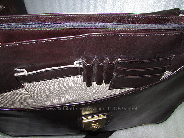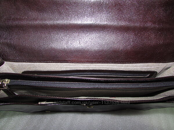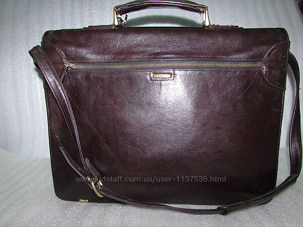 ВСЕ ТОВАРЫ В НАЛИЧИИ !!! Большой портфель - органайзер из качественной эластичной натуральной кожи . Фирменная фурнитура с логотипом бренда, кожаный чехол -брелок с ключиком. Размер : Ширина -41 см высота посередине -32 см, глубина дна - 13 см. Длинный съёмный плечевой ремень( на фирменных кнопках) макс. длина прибл.124 см, регулируется в сторону уменьшения пряжкой. Дефектов нет. Присутствуют следы носки , не влияющие на внешний вид. . Возврат и обмен не предусмотрен.