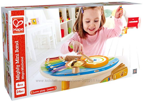 Только оригинальный товар!Универсальный музыкальный инструмент «Мини-оркестр» Hape Mighty Mini Band Wooden Percussion .