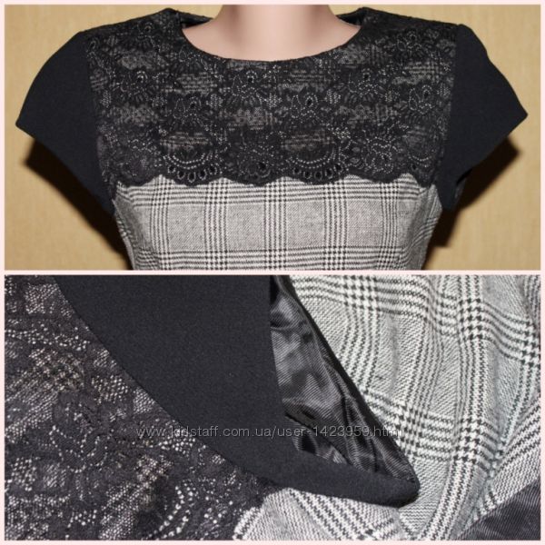Подробное описание: Шикарное платье шерсть в клетку, кружево Zara 2 фото