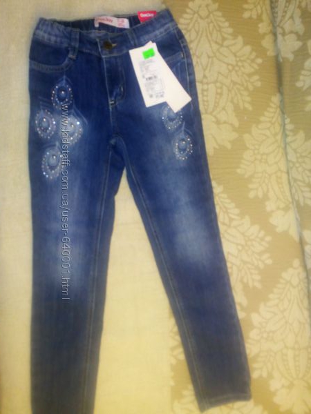 ДжинсыТМ Gloria Jeans новіе с бирками размер 128 длина 72 см внутрення длина штанині-53 см посадка спереди -19 см сзади 25 см есть резинка по бокамПолуобхват в талии 28 см