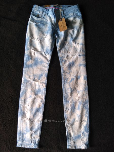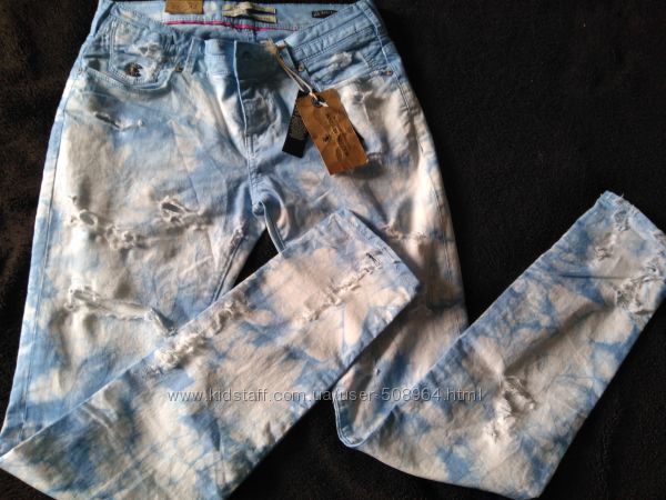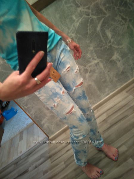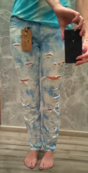 Новые фирменные джинсы с дырками рваные Цвет очень классный - летний, как голубое небо с облаками, очень оригинальные - єксклюзивДлина 100, ПОТ 38, ПОБ 48, тянутся