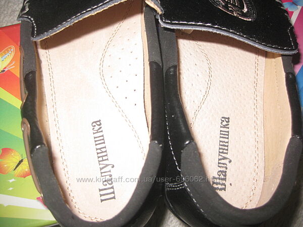 Полностью кожаные туфли, с анатомической кожвной стелькой, производства Испания., размер 30, цвет немного светлее, чем на фото, состояние хорошее, носили мало, покупали в фирменном магазине дорого, чек и коробка сохранились. Длина стельки 19 см., 250 грнНові шкіряні туфлі , у коробці. Натуральна шкіра, мяка шкіряна устілка, длина 22,5 см., розмір 36, чорні