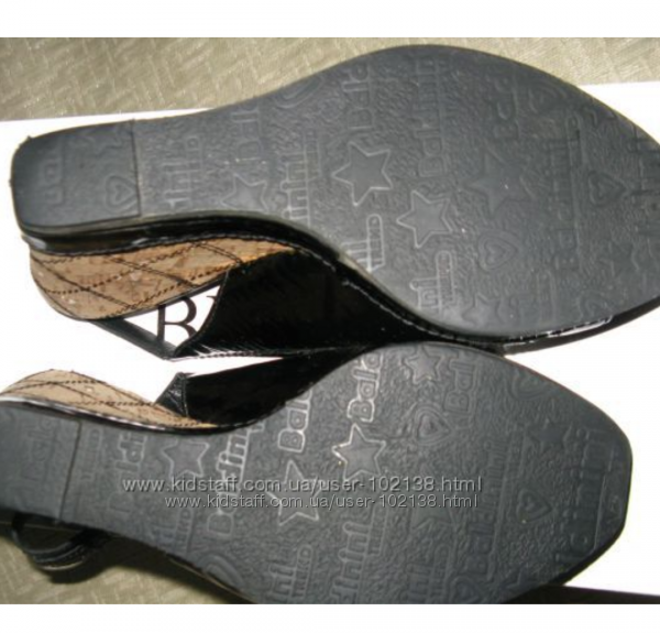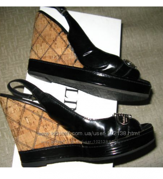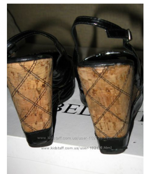 Натуральная лакированная кожа, пробковая танкетка. Длина по стельке 23см. Высота танкетки 11см, но очень удобная колодка, высота не ощущается, качество производителя говорит само за себя. Подошва не стерта, еще родная набойка и профилактика.
