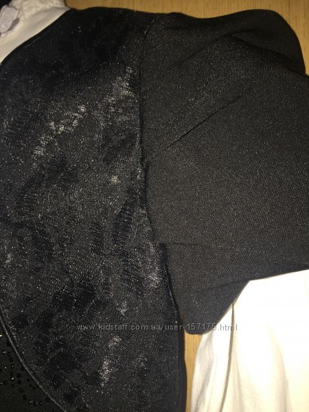 Болеро: на рост 140см. Короткий рукав , спереди гипюр чёрный, спинка тканевая чистая, спереди ленточная завязка на кончиках металические заглушки. Можно комбинировать под любую другую одежду. Очень стильно.