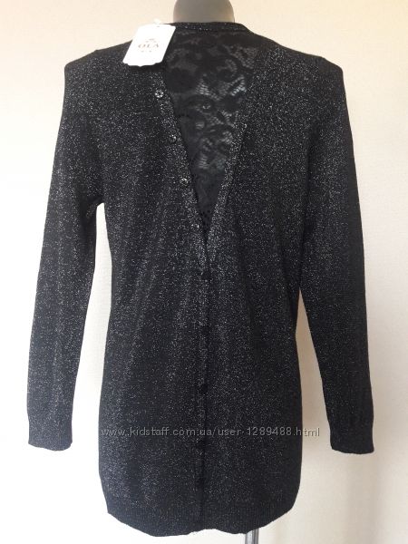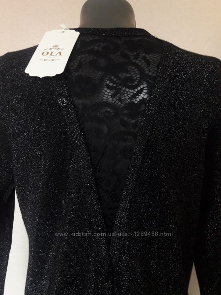 Шикарная вечерняя,нарядная,праздничная кофточка c люрексом и гипюровой вставкой на спинеМодель прямого кроя, длинный рукав, округлая горловина. На спинке изделия V-образный вырез с гипюровой вставкой. Также модель украшает ряд декоративных пуговиц по спинке.
