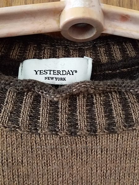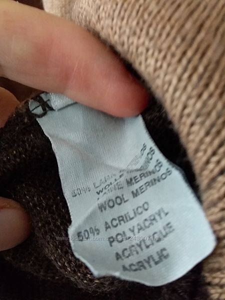 50% шерсть 50% акрил. Замеры в груди-пог-46 Длина-54 Рукав-.58 В хорошем состоянии..цвет кофе с молоком. Нижняя полоса внизу с одной стороны чуть шире,чем с другой.может задумка дизайнера,точно утверждать не буду. Доставка нп или укр почтой после оплаты
