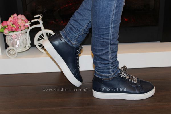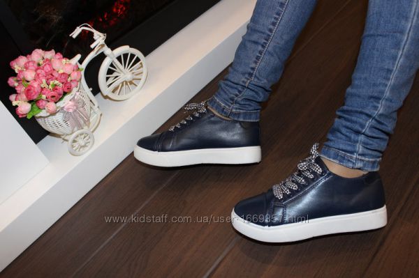 Подробное описание: Слипоны женские синие на шнурках Т969
