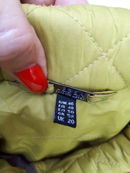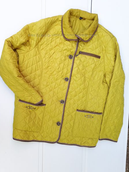 Фирменная куртка от немецкого бренда Barbara Lebek(куплена в Германии) Пролет с размером прислана родственниками, но не подошел размер Размер указан XL, реально большемерит идет на 50-52-54 обычный, евро 46-48 Стильная стеганая женская куртка.Демисезонная. Цвет фисташковый, приятная спокойная сочная зелень , но ярче чем олива Куртка изготовлена из водо- и ветроотталкивающего материала,утеплена синтепоном.Синтепон простеганый,что не позволяет ему сбиваться при стирках.Куртка легкая и теплая.С экологически чистой пропиткой Ecorepel Eco,которая отталкивает воду и не позволяет грязи проникать в структуру материи.Куртка застегивается на пуговицы. Два боковых кармана один на груди на молнии ..Очень удобная и комфортная модель.Низ рукава-возможен манжет.(вся окантована коричневой кожей-воротничек, планка спереди, карманы и рукава, а также подол Состав:100%полиамид.Утеплитель:100%синтепон(полиэстер). Производство-Германия.Новая качественная вещь. ПРИВОЖУ МЕРКИ: Плечи - 46см Длина рукава от плеча - 63см Полуобъем груди - 62см тянется 66 ПОТ-60 Полуобъем низа изделия -65см,тянется до 68см Длина изделия по спинке без ворота - 74см