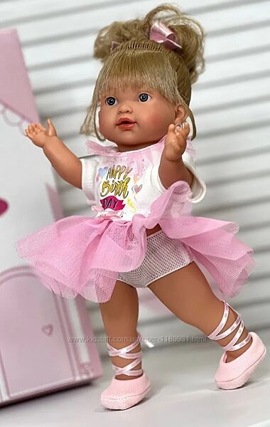 Кукла Валерия произведена известным эксклюзивным испанским брендом Llorens. Валерия - балерина, на ней красивая юбка из тюля, сетчатые трусики и розовые балетки.