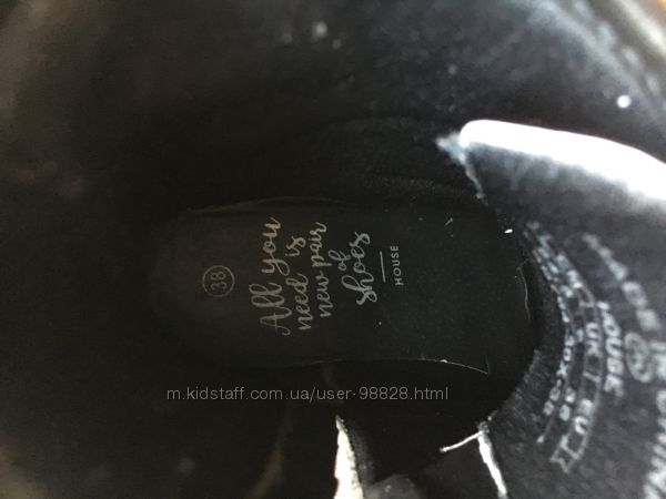 Гламурные ботинки House 38 р. (по стельке 23,5 см). Состояние как на фото, есть повреждения в местах залома внешнего материала, внутри состояние отличное. Ботинки выдержат ещё сезон. Цена 150 грн.