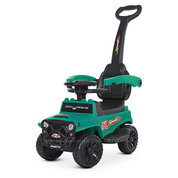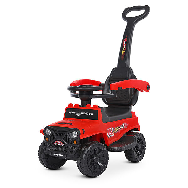 Материал: металл и пластик.Родительская ручка для удобного управления.Защитный бортик для безопасности.Подставки для ножек, обеспечивающие устойчивость.MP3.Стильный дизайн и яркие цвета.