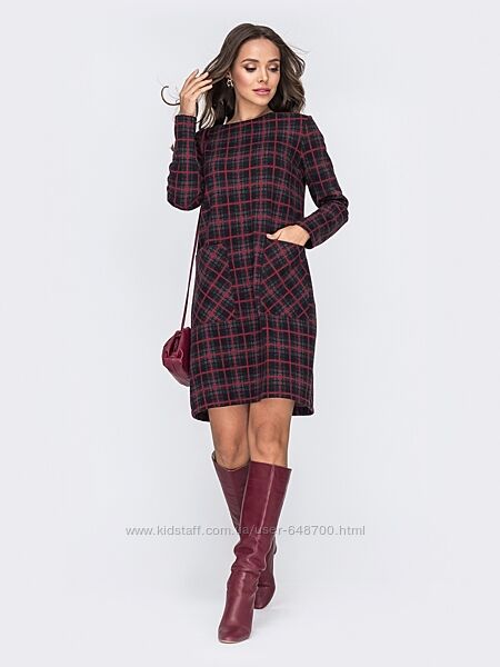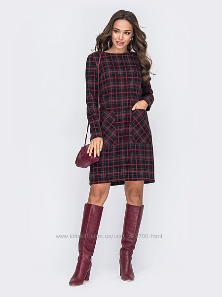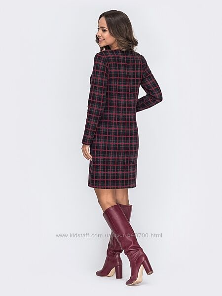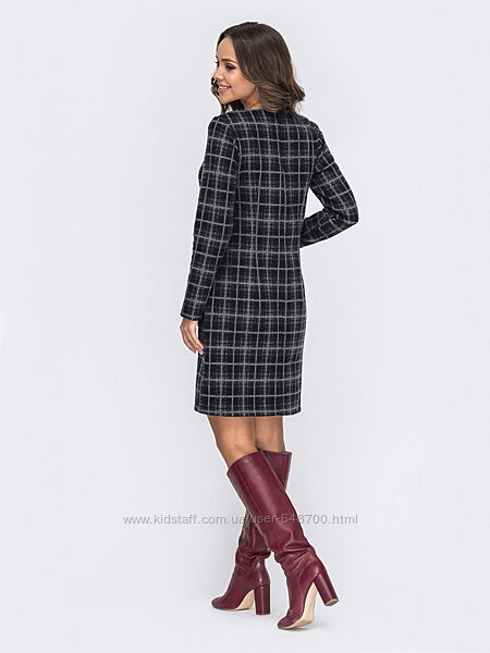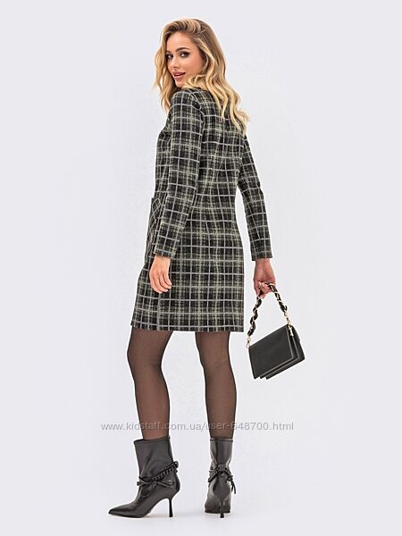 Подробное описание: Стильное платье-мини в клетку из жаккарда