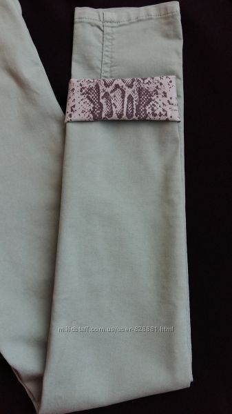 Стильные джинсы супер-скинни нежного мятного цвета с интересным животным принтом.Посадка средняя.